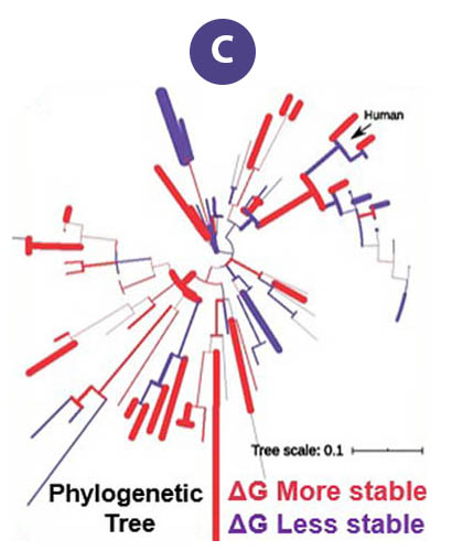 Data users from Harvard and the University of Zurich accessed FAIR data from the Protein Data Bank generated by the MagLab's NMR Facility, data that describes the molecular structure of the RNA-binding protein, "FUS" (Figure A). The data were used to examine the effects of naturally-occurring mutations that change the structure of its fibril core among mammals dating back 160 million years.